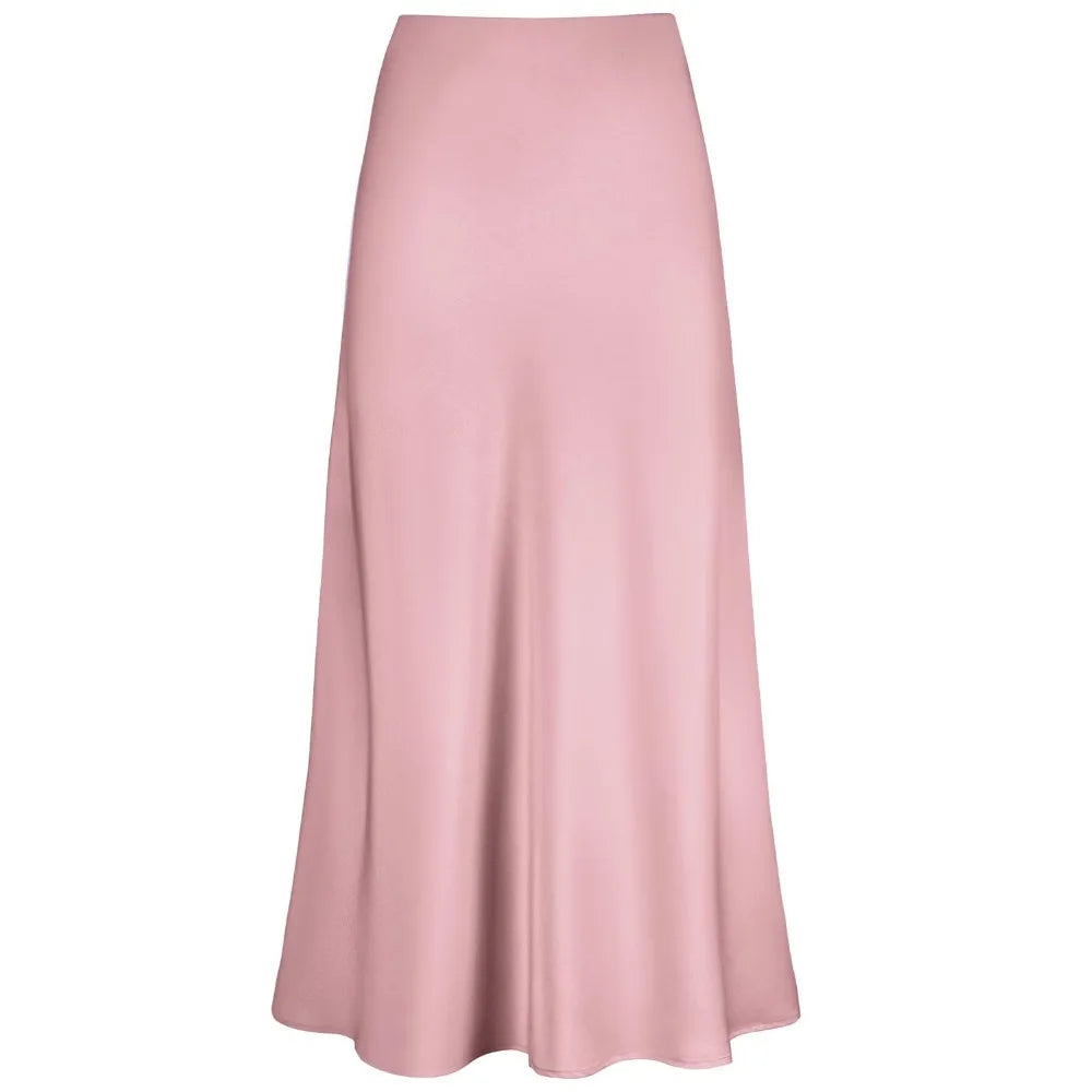 2026 Elegant Faux Silk Satin Skirts for Women High Waist A-line Office Lady Solid Color Glossy Finish Fishtail Skirt