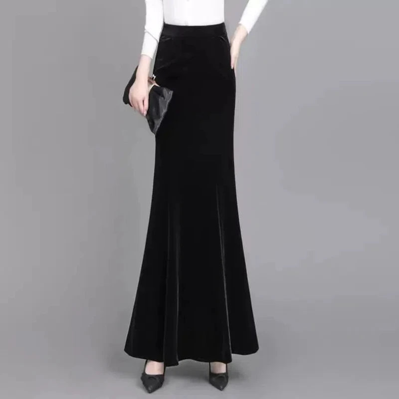 Extended Gold Velvet Skirt Fishtail Skirt Autumn and Winter Slim Tall Person with Hip-covered Long Skirt Female Temperament