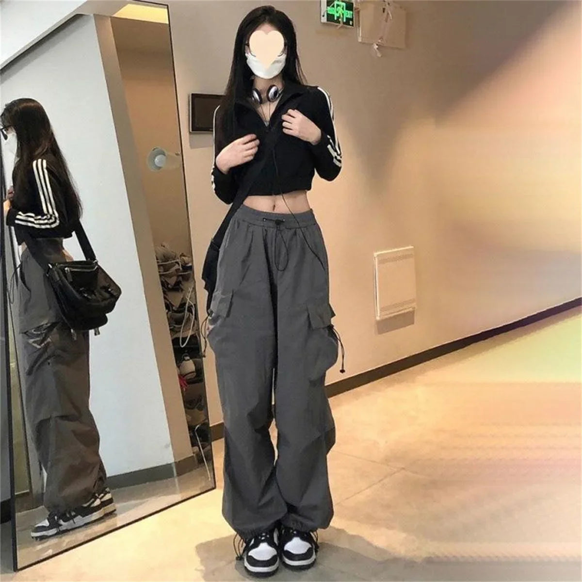 Fashion Korean Cargo Pants Women's High Waisted Loose Tactical Sports Pants Fashionable Hip-hop Harajuku Women's Punk Pants