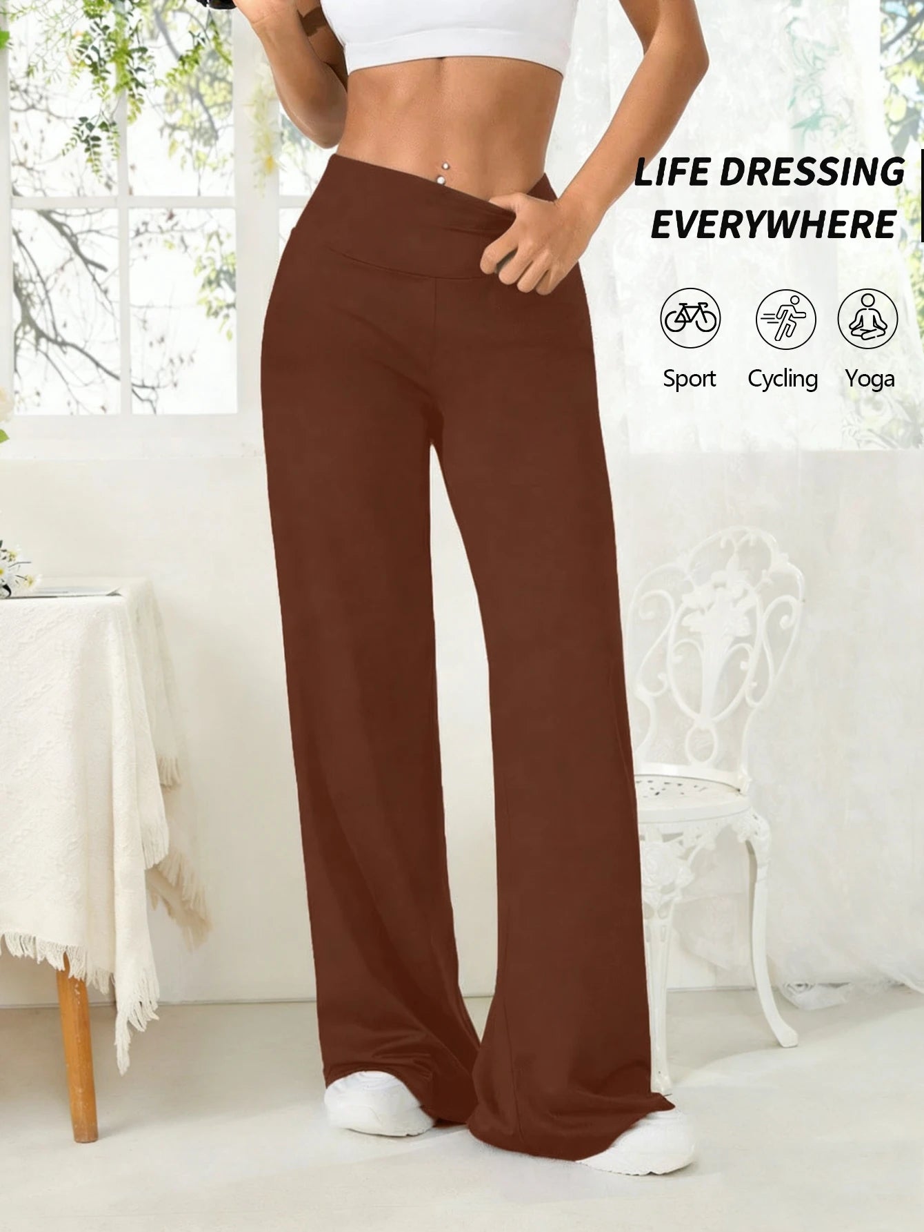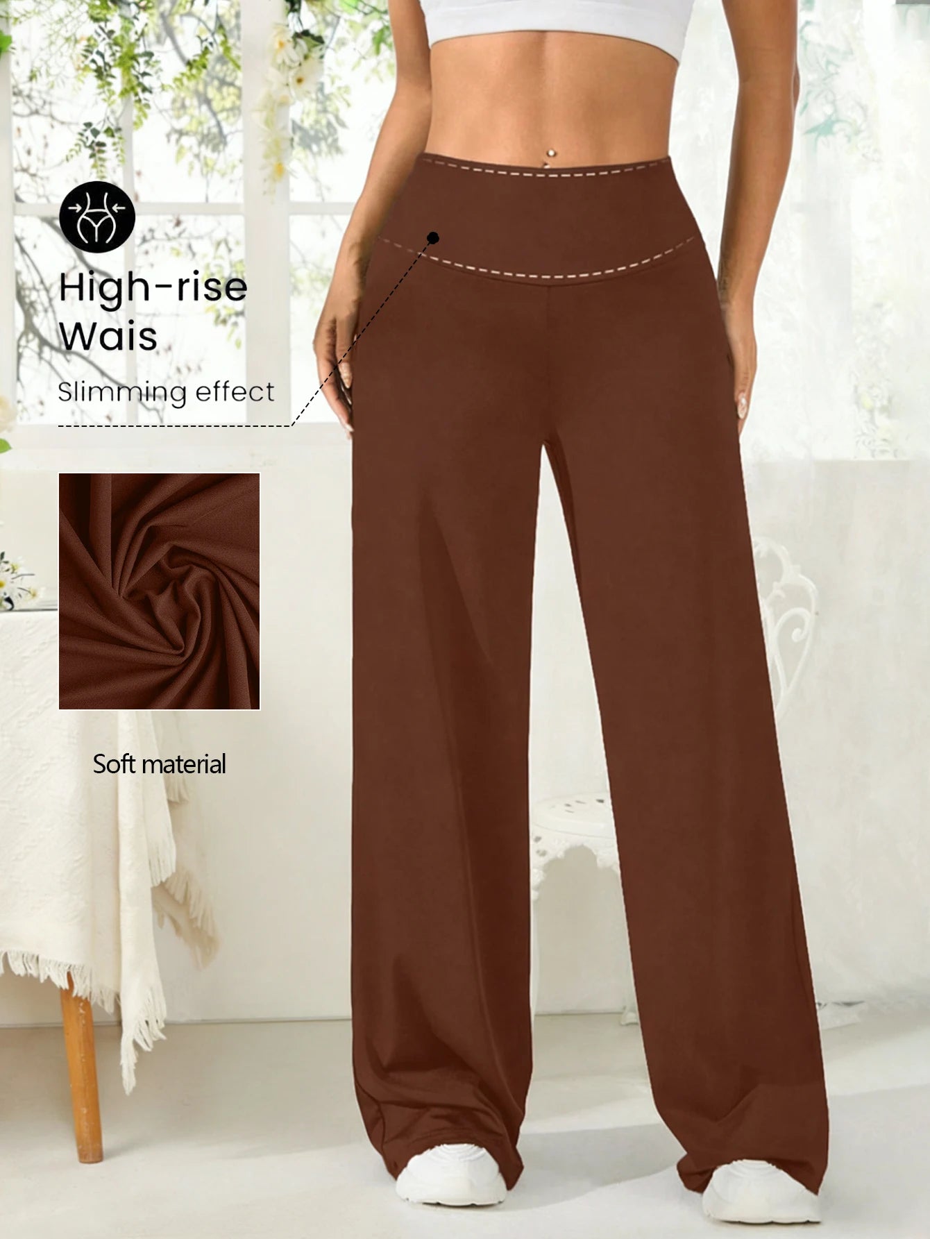 Spring Style Cozy Soft High-Rise Wide Leg Pants Summer Women Slimming Casual Trousers Brown Yoga Pants for Gym Daily Wear
